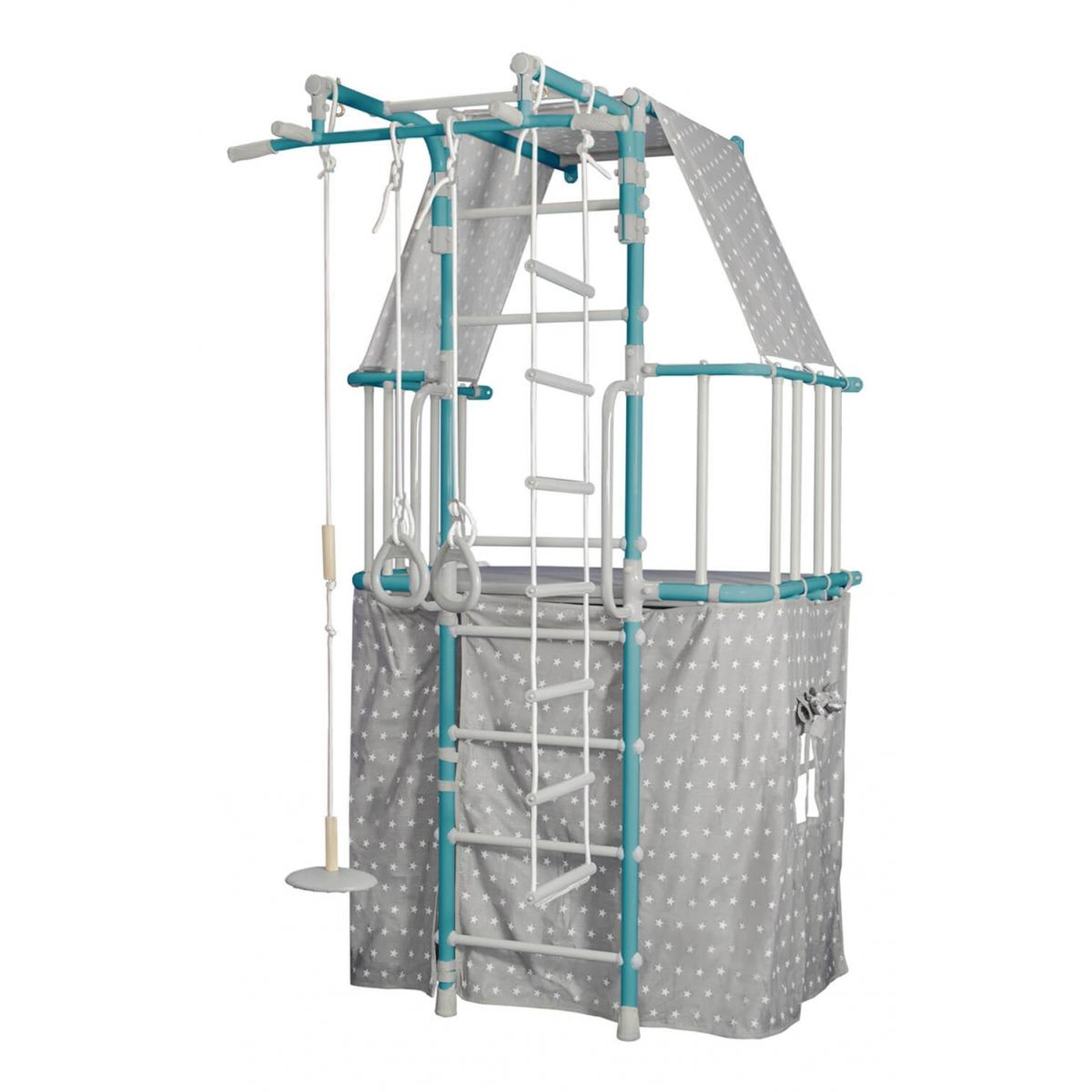 Ginásio de Parede Infantil com Encosto, Argolas e Baloiço START1 217*63*5,25 cm Azul Claro-Arco-Íris