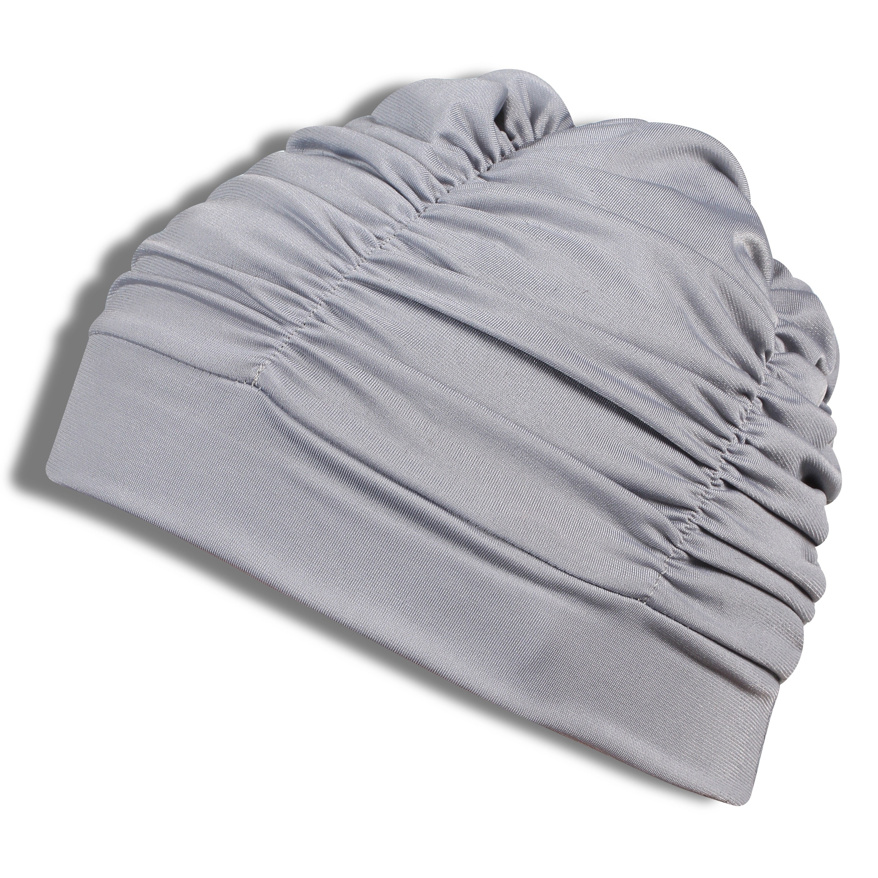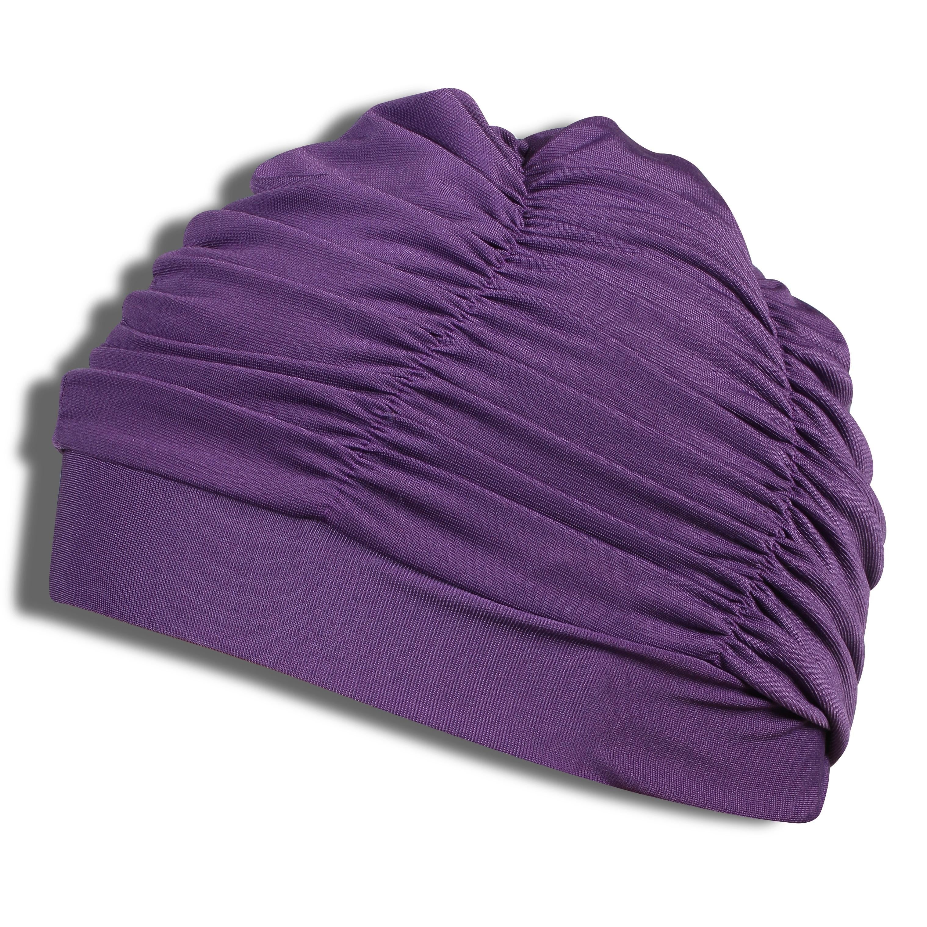 Touca de natação com pregas de lycra não pressiona a cabeça, fácil de colocar e tirar. É permeável à água.