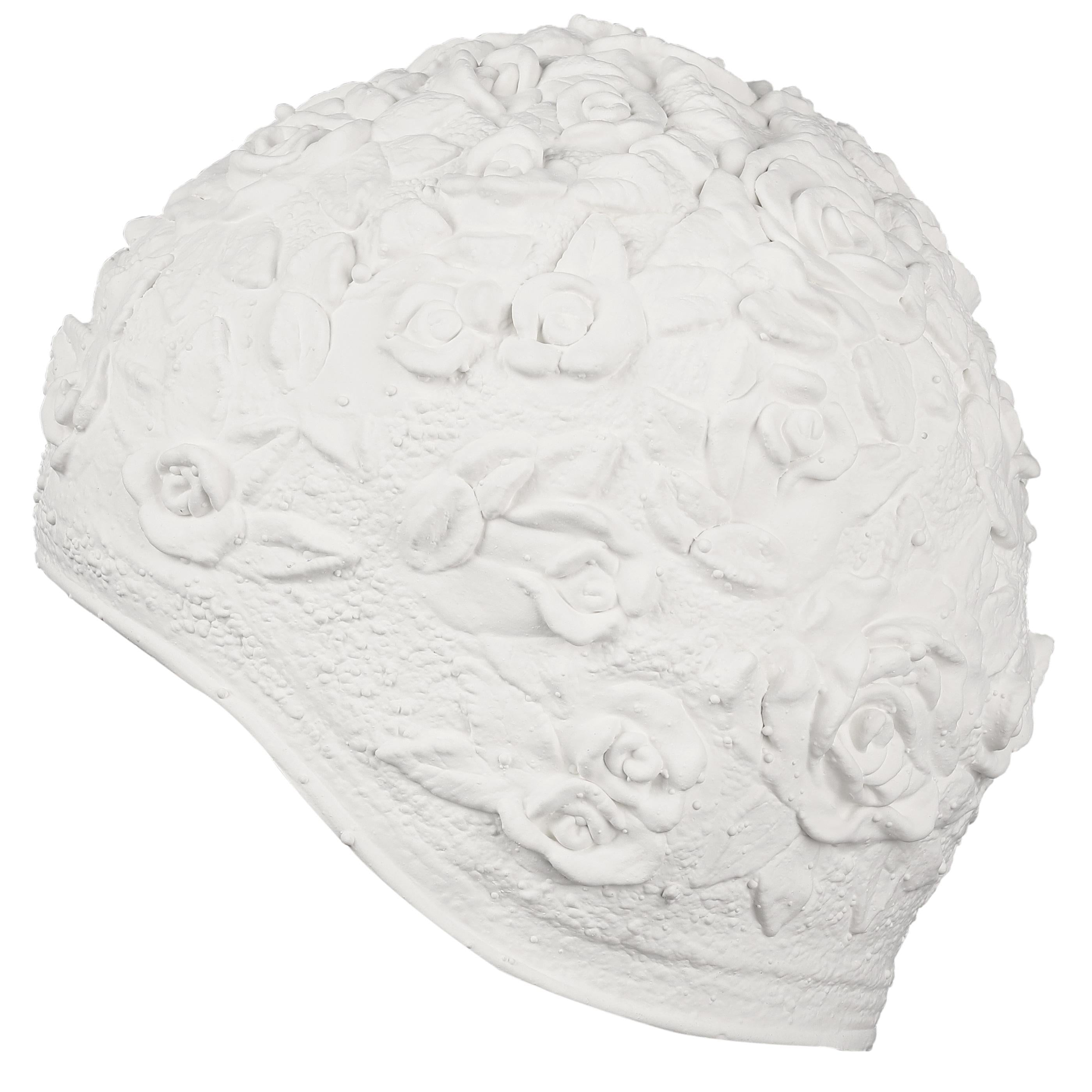 Touca de natação com rosas em relevo é feita de látex. O chapéu oferece um ajuste confortável e proteção contra...