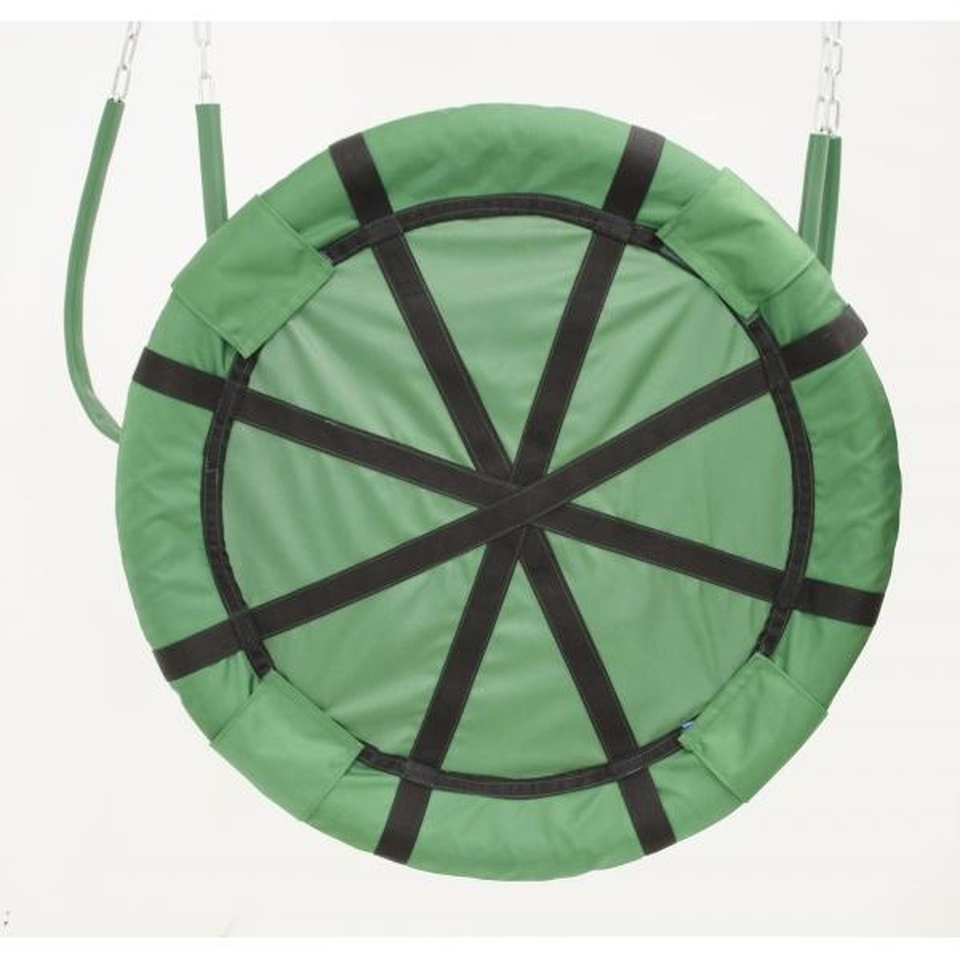 Balanço NIDO para crianças e adultos. Equipamento acoplado para complexos desportivos ao ar livre Fácil de remover e reposicionar: Suporta até 100 kg. Altura ajustável. Superfície da corrente emborrachada: capas para proteção e conforto das mãos. Características: Assento grande: diâmetro - 90 centímetros. Tecido - Oxford: utilizado na confecção de toldos, tendas e roupas de forças especiais. 1680 den de espessura: maior resistência e resistência ao desgaste. Diâmetro do tubo: 25mm. Espessura do tubo: 2 mm. Na base existe um tubo de metal. O tubo é forrado com um rolo macio - as laterais não são apenas duráveis, mas também confortáveis.