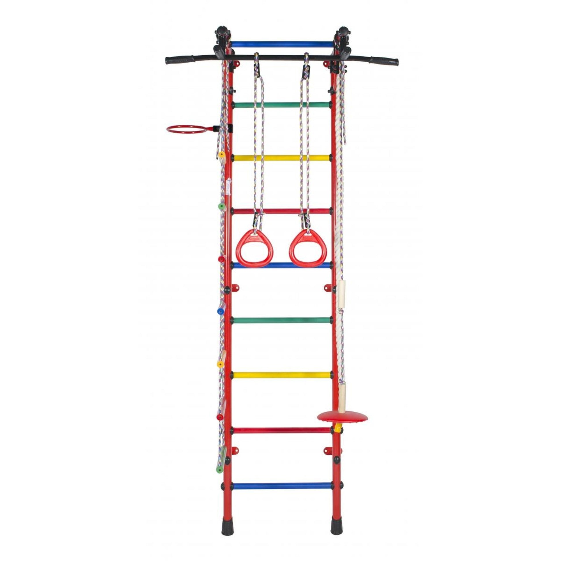 Ginásio de Parede Infantil com Encosto, Barra Pull-up, Argolas, Escada e Baloiço GAMMA 230*64*52 cm