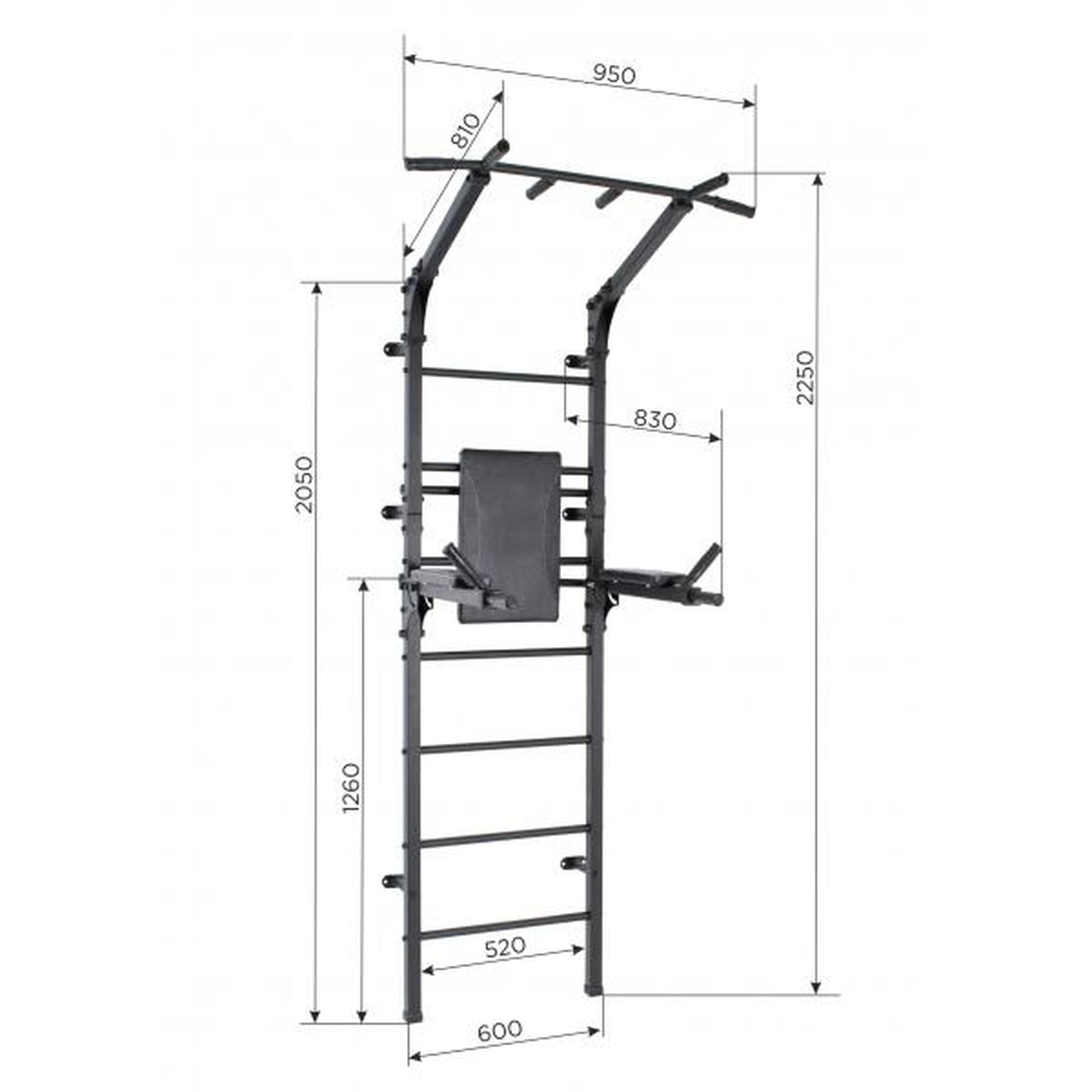 Ginásio de Parede Para Adultos com Barra, Barras Dobráveis e Barra Pull-Up OLIMPUS 225*90*83 cm