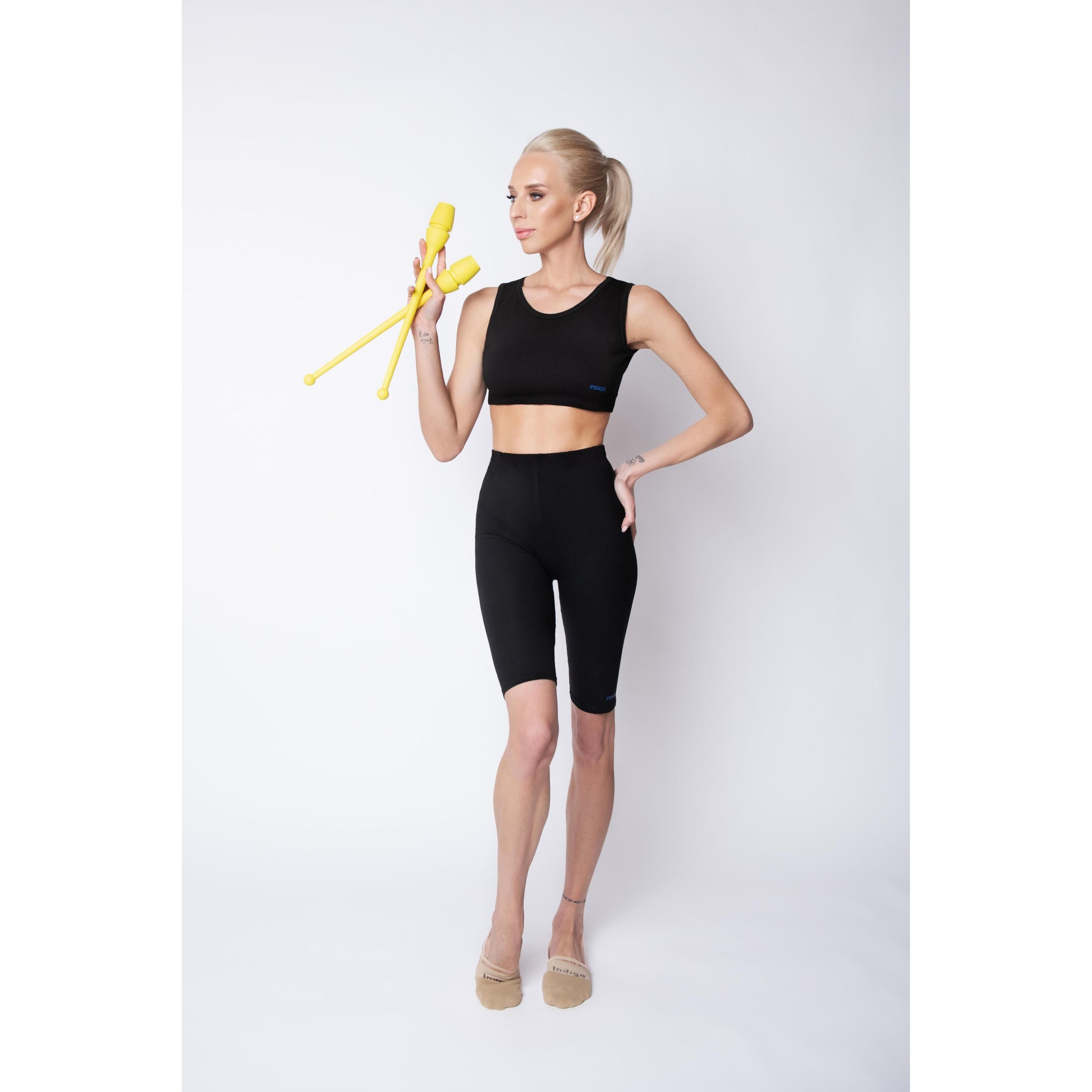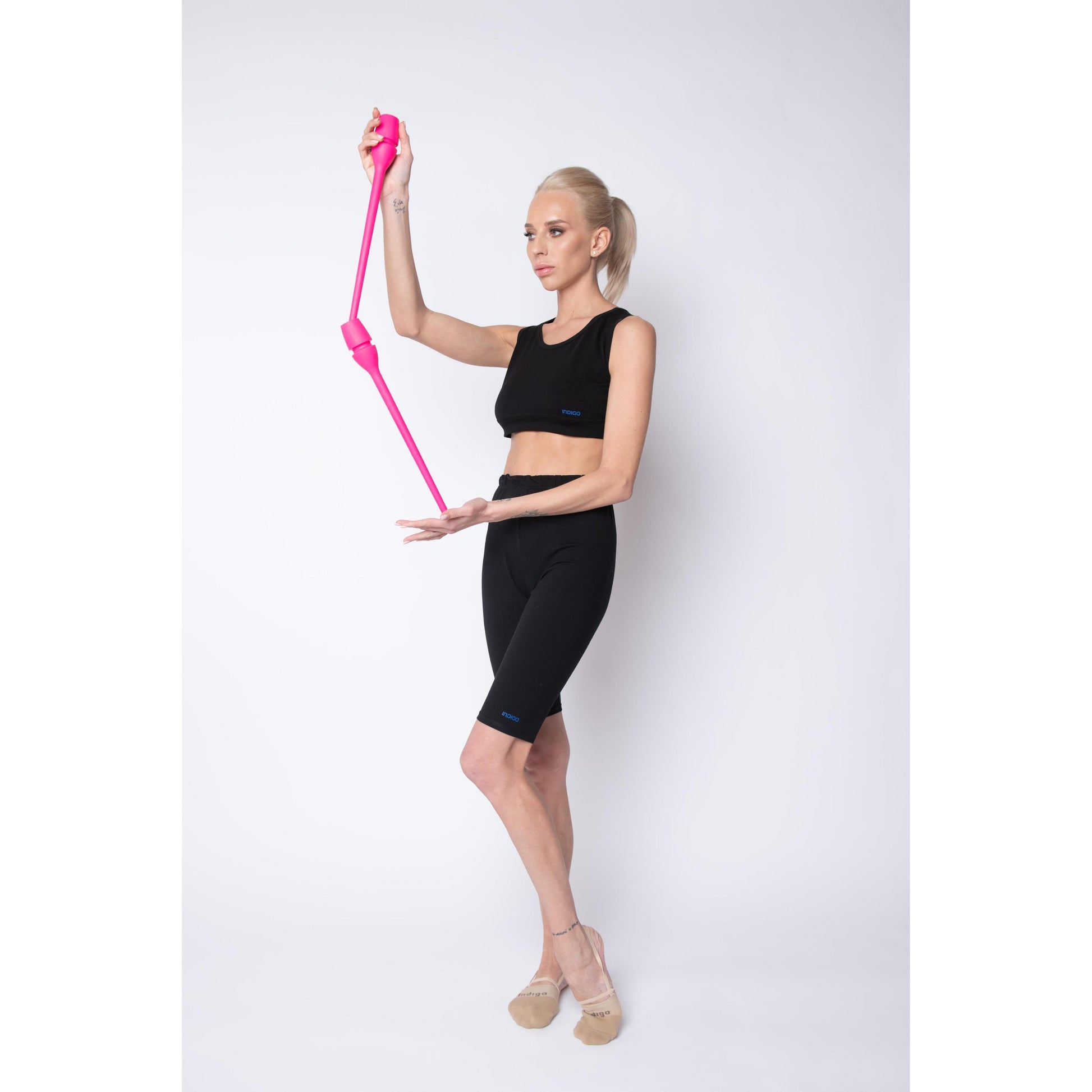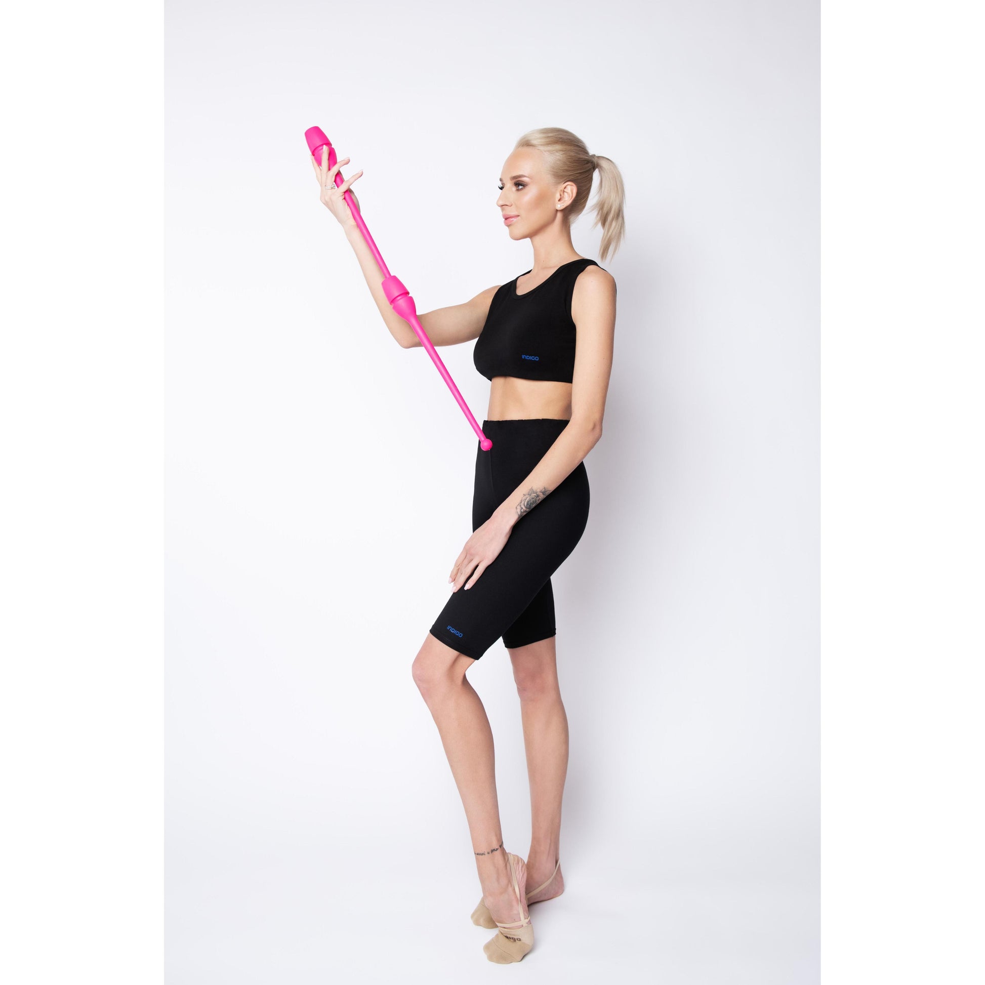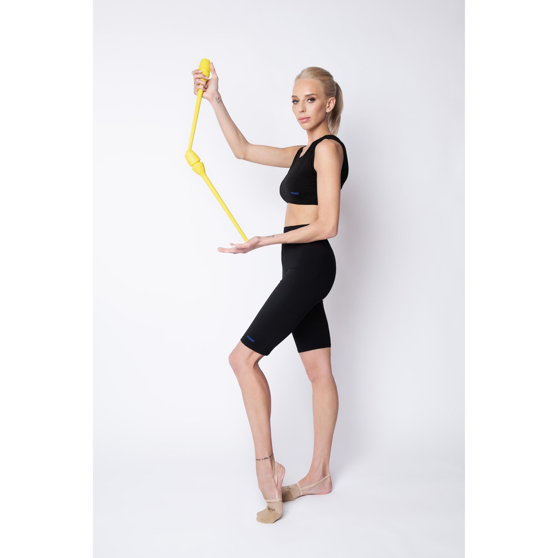 Maças conectáveis INDIGO. As varas são bem equilibradas, saltam bem no chão e não quebram quando caem. O revestimento de borracha os torna menos traumáticos. São de alta qualidade, bonitos e confortáveis, o que faz dos nossos tacos um campeão de vendas tanto nas lojas especializadas em ginástica rítmica como em todos os mercados da Rússia.